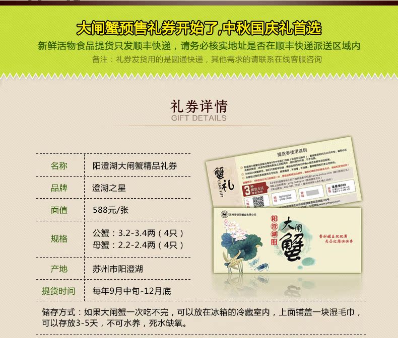 >> 澄湖之星牌 阳澄湖大闸蟹礼券面值588
