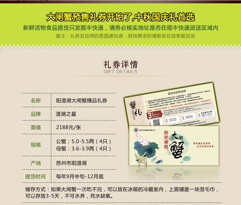 >> 澄湖之星牌 阳澄湖大闸蟹礼券面值2188